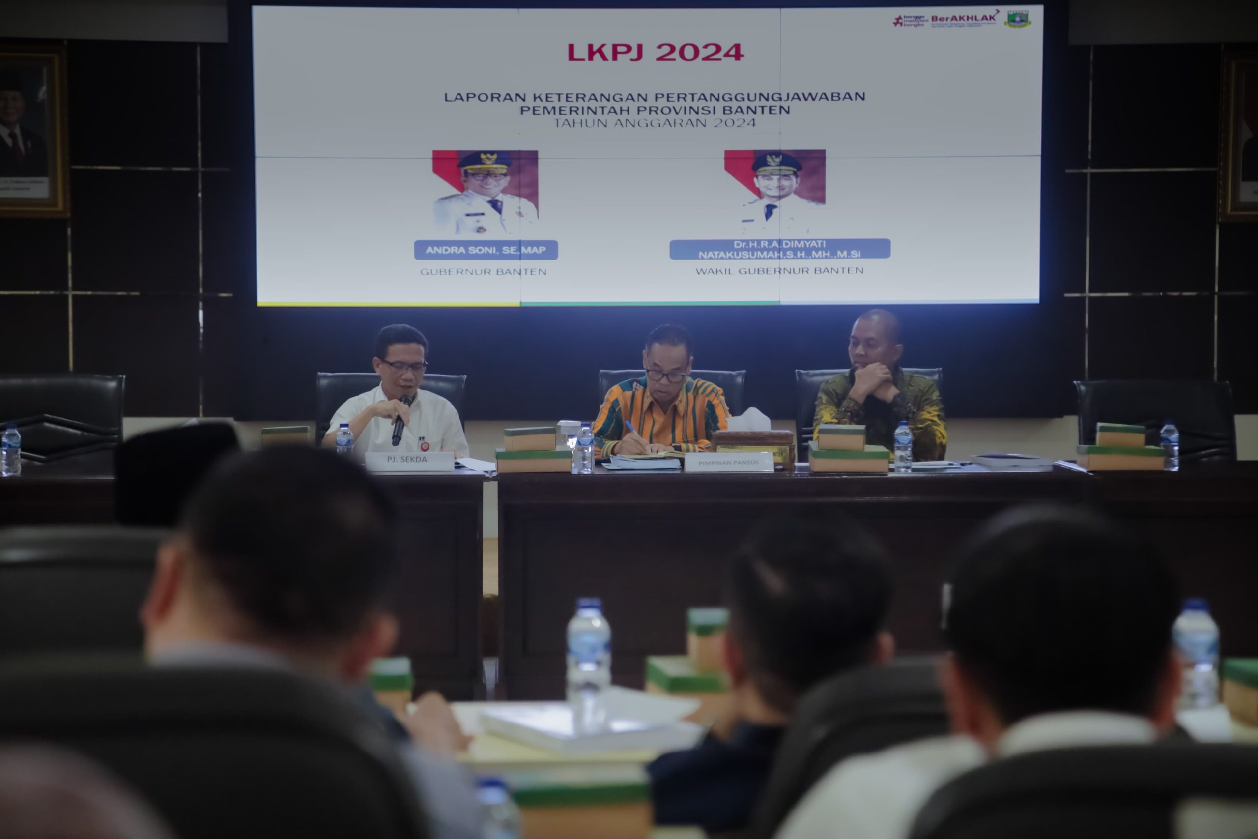 RATAS – Pimpinan Dewan Perwakilan Rakyat Daerah (DPRD) Provinsi Banten dan anggota Panitia Khusus (Pansus I) sukses menggelar rapat kerja dengan Organisasi Perangkat Daerah (OPD). Rapat Kerja tersebut membahas Laporan Keterangan Pertanggung Jawaban (LKPJ) Pemerintah Provinsi Banten Tahun Anggaran 2024.